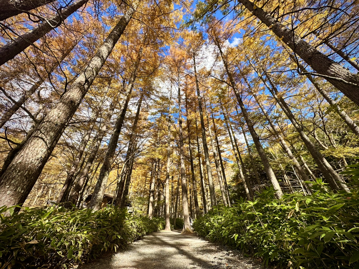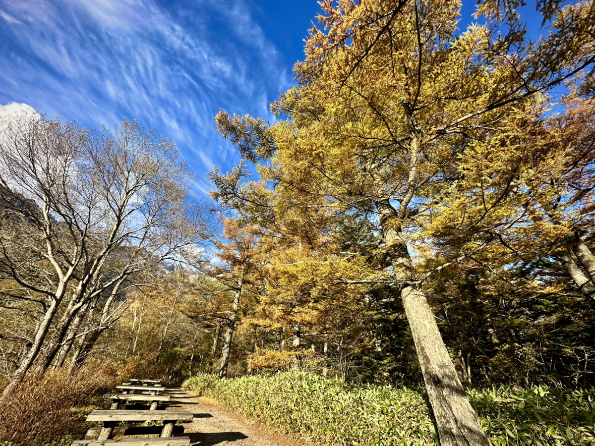 Located a brisk five minute walk from Kappa Bridge, the Konashidaira Camping Area also boasts an impressive array of golden larches. There are even strategically-place benches where you can sit down and admire the scenery to your heart's content.