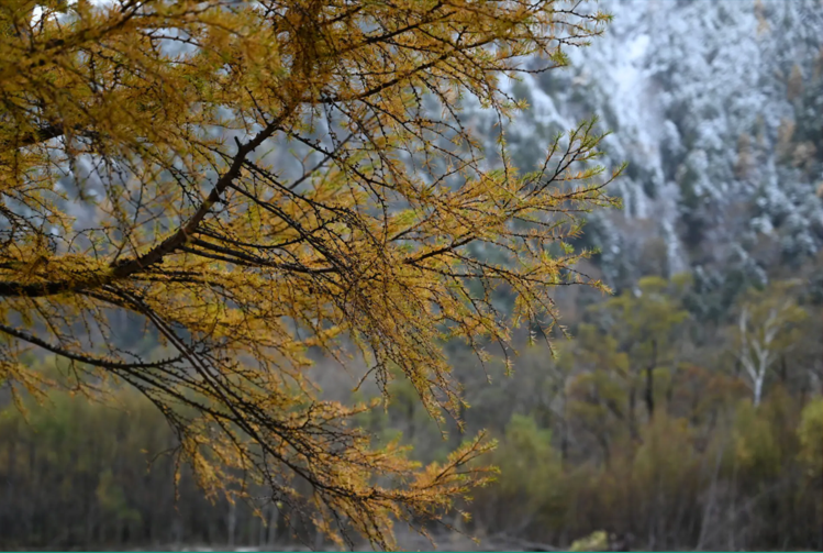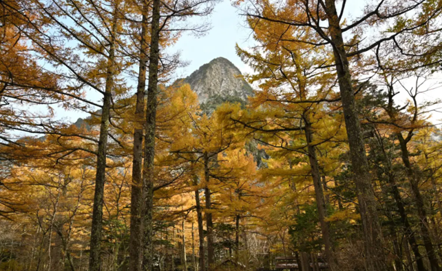 Amid all these signs of coming winter, the last vestiges of autumn clung defiantly to their branches as the larch trees around central Kamikochi continued to show peak colors: