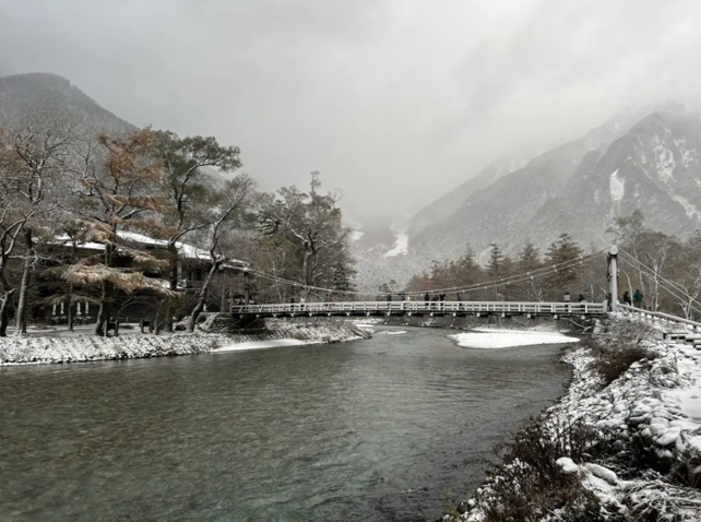 As you may have guessed from the title of today's blog, we've seen a bit in snowfall in Kamikochi. It all started on Monday, when the skies clouded over and fresh snow gusted in blanketing the ground and crowning the mountains with a lustrous white mantel.